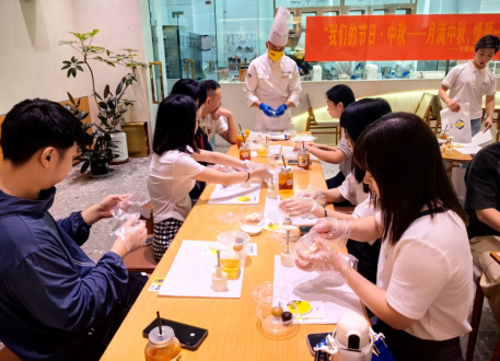 月饼DIY活动现场,大家围坐在一起,揉面团、包馅料、压模、脱模……大家你一言、我一语,一边揉面皮、一边相互探讨做法,分享着自己的创意“作品”。伴随阵阵欢声笑语,一个个小巧玲珑、形状各异的冰皮月饼诞生了,不仅锻炼了动手能力,更在欢声笑语中感受到了中秋佳节的独特魅力,让传统文化在互动中得到了传承。